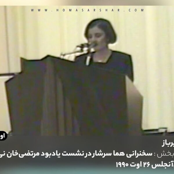 بخش نهم – سخنرانی هما سرشار در نشست یادبود مرتضیخان نیداوود – لسآنجلس ۲۶ اوت ۱۹۹۰@homasarsharسپتامبر 10, 2022از دیرباز بخش نهم سخنرانی هما سرشار در نشست یادبود مرتضیخان نیداوود لسآنجلس ۲۶ اوت ۱۹۹۰ *از دیرباز ... بیشتر بخوانید