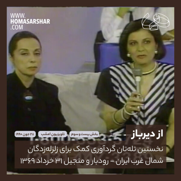 از دیرباز – بخش بیست و سوم – نخستین تلهتان گردآوری کمک برای زلزلهزدگان شمال غرب ایران – رودبار و منجیل ۳۱ خرداد ۱۳۶۹ (۲۱ جون ۱۹۹۰)@homasarsharآگوست 5, 2023«از دیرباز» بخش بیست و دوم نخستین تلهتان گردآوری کمک برای زلزلهزدگان شمال غرب ایران – رودبار ... بیشتر بخوانید