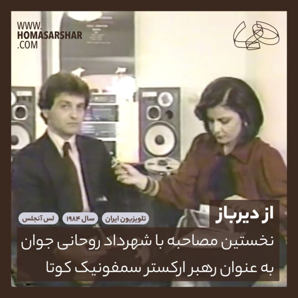 ازدیرباز- بخش دهم – نخستین مصاحبه با شهرداد روحانی به عنوان رهبر ارکستر سمفونیک کوتا – لسآنجلس – سال ۱۹۸۸@homasarsharآوریل 15, 2023«از دیرباز» بخش دهم نخستین مصاحبه با شهرداد روحانی جوان در آغاز کارش به عنوان رهبر ارکستر ... بیشتر بخوانید